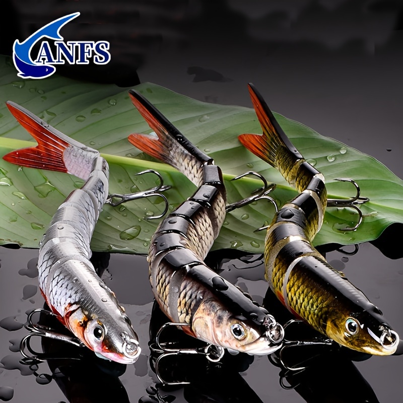 About this item1)ABS MATERIAL- Made of high-quality ABS which can make the bait more flexible, simulate the swimming lane of the fish, and bring you a good fishing experience.2)PREMIUM DESIGN-8 different sections of the fishing lures body are connected by strong woven Fabric. The fishing bait is strong enough to withstand the attacks and bites of big fish.3)HOOK OF BAIT: Equipped with 2 super-sharp three hooks, which have high durability and flexibility in salt water and fresh water.