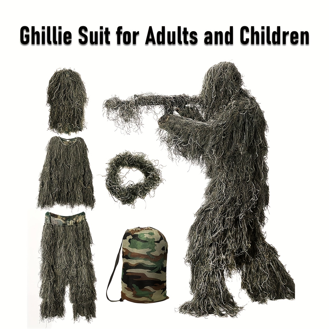 Ghillie Suit, 5 in 1 camouflage suit, outdoor lightweight camouflage suit, for jungle hunting, CS, bird watching, or Halloween.