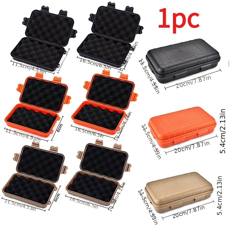 Keep your valuables, lighter, matches, electronic gadget and etc. Save and dry, good waterproof performance, can float on the water, Shockproof by 3mm/0.118in PE inner lining. ( Can’t soak in the water or it will leak) Terrific tool for camping, boating, fishing, tubing, swimming, kite boarding, or any other water sport. Material: Plastic Color: Black/Orange/Brown 1* Storage Box (not includes other accessories)