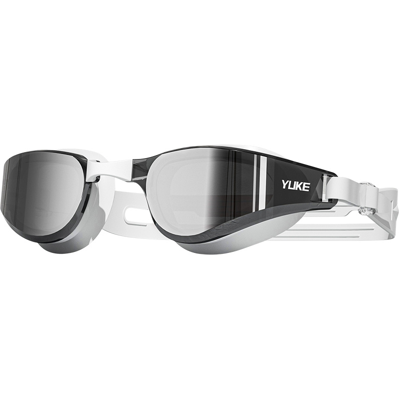 Adult high-definition swimming goggles, made of durable PC material, leak proof, with non fogging lenses and a frame design that provides a wide field of view. Available in black, white, and blue, unisex