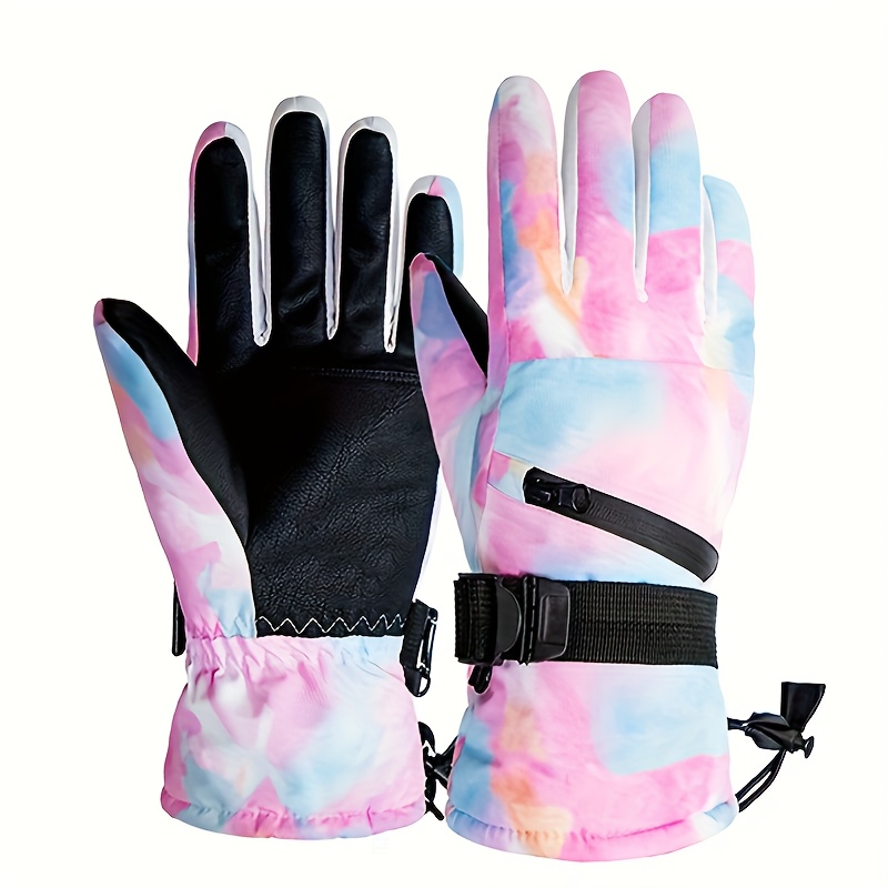 Ski Gloves, Christmas And New Year Gifts, Cute Printed Polar Lining Thickened Warm And Windproof Adjustable Wristband, Unisex Outdoor Gloves S/M/L Multicolor.