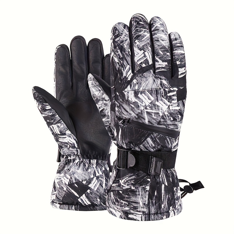 Winter Men’S Thermal, Thick, And Non-Slip Gloves for Cycling And Outdoor Activities, Featuring White Graffiti Design for Skiing And Biking.