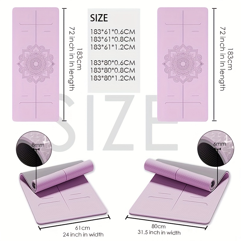 Non-Slip TPE Thick Yoga Mat with Alignment Markers, Large Size 182.88cm Long X 80.01cm Wide X 0.58cm Thick, Tear-Resistant Exercise And Fitness Mat for Yoga, Pilates, And Floor Training.