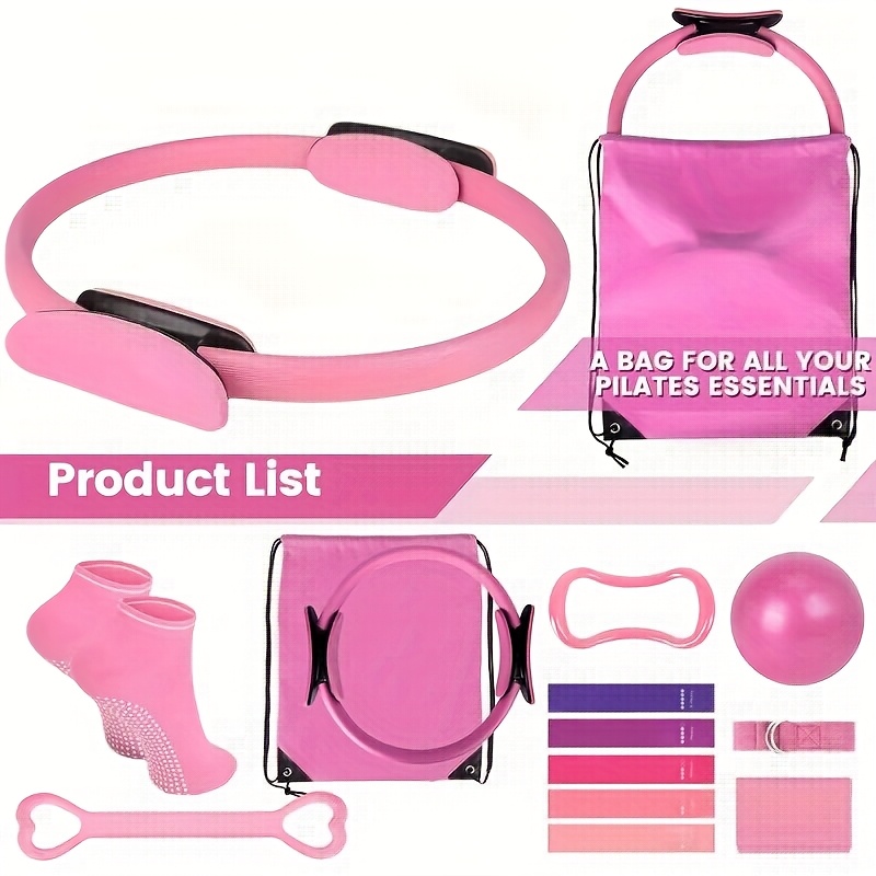 This 13pcs Strength Training Set Made of PP Material Is Suitable for Home Workouts, Featuring a 9.8-Inch Pilates Ball, a 12-Inch Yoga Ring, And Resistance Bands, Designed for Women